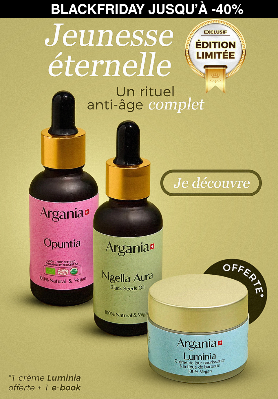 Argania is a Swiss company offering a range of skin care products, including a black cumin oil serum for psoriasis, eczema and acne, and a prickly pear seed oil serum for wrinkles, dark circles and puffiness. All products are 100% organic and vegan.